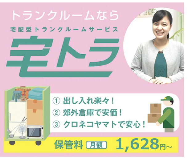 宅トラは、クロネコヤマトの集荷・配送ネットワークを活用した荷物保管サービスです。