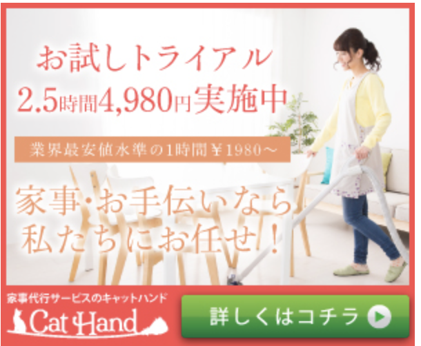 キャットハンドは、東京都内を中心にサービスを展開する家事代行サービスです。